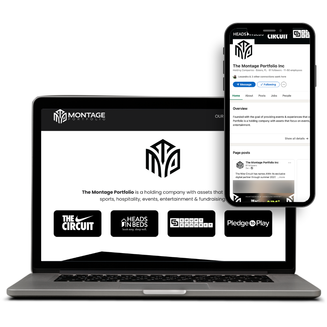 The Montage Portfolio is a holding company with assets that focus on sports, hospitality, events, entertainment & fundraising. We were responsible for the brand identity, website design, all print/digital designs, and marketing strategy.